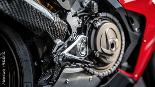 design, wheel, drive, sleek, metal, engineering, silver, aggressive, detail, innovation, mechanical, smooth, stylish, modern, sharpened, blurry, performance, rear, sharp, sport, power, fiber, powerful, red, black, of, intense, engine, fast, body, carbon, dynamic, racing, closeup, speed, motorcycle, bike, gear, out, technology, shiny, chain