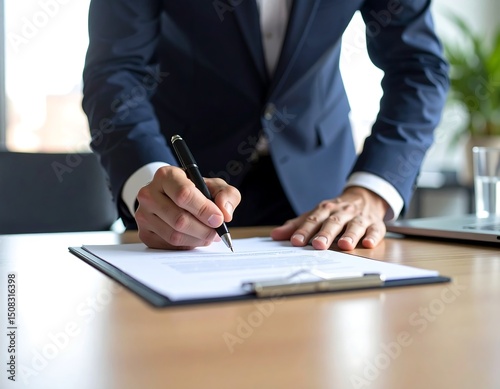 suit, signing, document, clipboard, pen, hand, business, office, professional, contract, agreements, paperwork, signature, deal, desk, wood, table, man, person, writing, legal, finance, corporate, serious, focused, attentive, detail, precision, accuracy, commitment, authority, responsibility, diligence, careful, formal, official, transaction, employment, workplace, career, job, work, industry