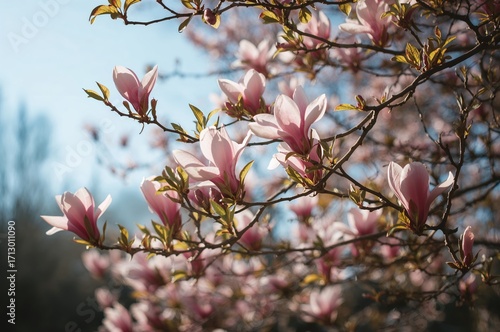 magnolia, tree, background, flower, sky, nature, spring, floral, beauty, garden, blue, colours, plant, park, pink, environment, beautiful, natural, life, day, ecology, botany, season, seasonal, aroma, springtime, botanical, blossom, branch, flora, twig, outdoors, magnoliaceae, blooming, april, blurred, bright, closeup, delicate, fresh, march, may, nobody, object, outside, tender, tenderness