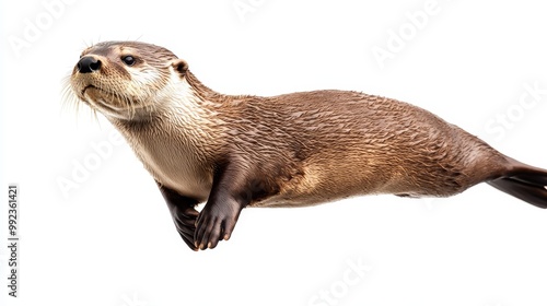 otter, animal, wildlife, nature, mammal, aquatic, swimming, isolated, white, background, closeup, furry, playful, cute, adorable, wet, fur, whisker, wild, natural, environment, photo, stock, image, fauna, marin, creature, portrait, detailed, texture, brown, sleek, elegant, charming, curious, expressive, eye, paw, streamlined, underwater, habitat, conservation, biology