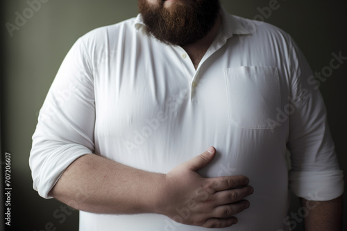 man, white shirt, self-confidence, body image, overweight, male, closeup, casual attire, fashion, simplicity, empowerment, real people, midsection, partial view