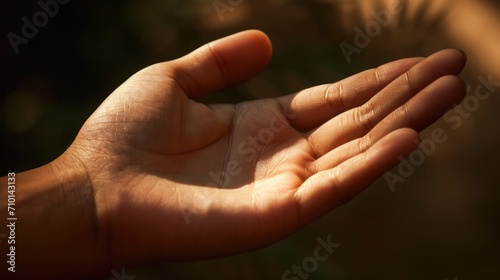 Close-up of a relaxed hand, fingers slightly curled, showcasing the natural glow of the skin generative ai