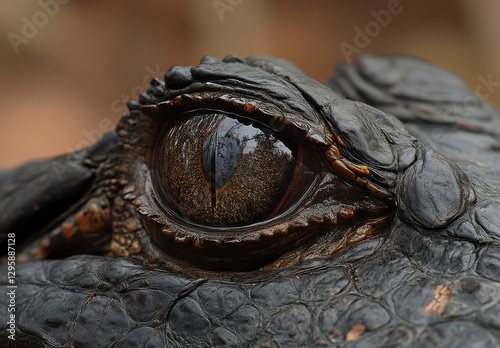 Close-Up of a Reptile Eye Showcasing Intricate Details and Textures in Natural Habitat with Beautiful Reflections Captured in the Surface of the Eye