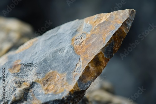 Close-up of a rough flint in stone with rustic textures and historical details. Flint stone in the concept of connection with ancestral techniques.