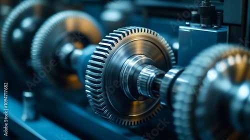 gear, metal, machine, industrial, machinery, engineering, technology, manufacturing, factory, production, automation, mechanism, cog, wheel, teeth, rotation, movement, power, force, transmission, speed, efficiency, precision, design, intricate, complex, macro, detail, surface, texture, shiny, silver, grey, blue, background, abstract, pattern, shape, line, industry, work, job, workplace, steel, shaft, bearing, lubricant, operation