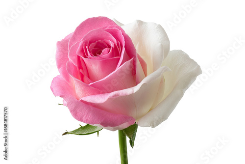 rose, pink, white, flower, beauty, floral, nature, botanical, blossom, bloom, single, closeup, macro, soft, tender, elegant, symmetry, colours, contrast, vibrant, delicate, fragrant, flower petals, studio, isolated, dark, black, background, stem, green, leaf, growth, life, organic, beautiful, flowering, plant, romantic, love, gift, spring, summer, pretty, softness, cleaving, half