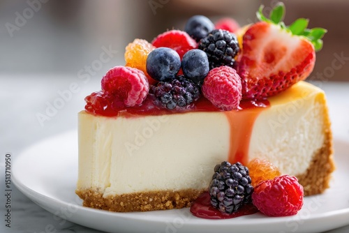 creamy, sweet, bite, dessert, juicy, blueberry, fruit, close, closeup, strawberry, cheesecake, sweetness, food, slice, treat, plate, fresh, tasty, blackberry, topping, delicious, raspberry, red, fruit cake, white, berry, colourful