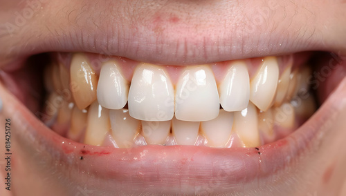Close-up of a smile showcasing healthy, clean teeth with slight gum irritation, highlighting dental health care and oral hygiene importance.