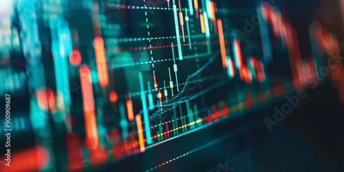 Close-up of a stock market chart with candlestick patterns and technical indicators, illustrating market analysis and trading strategies