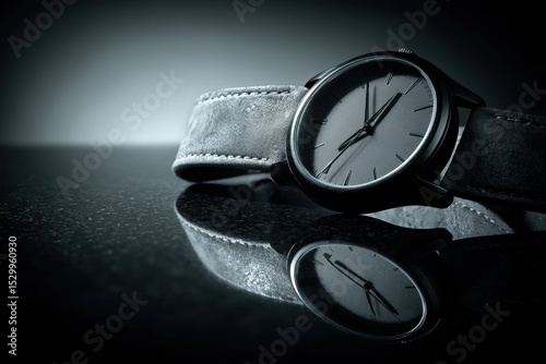 texture, subtile, minimalist, accessory, watch, surface, detail, dark, life, quality, product, fashion, time, horologe, leather, elegant, strap, luxury, classic, sophisticated, modern, still, wristwatch, shot, closeup, design, grey, black, image, style