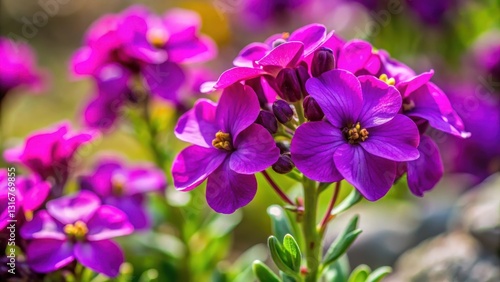 Close-up of a vibrant purple alpine wallflower in bloom, close-up, spring, close-up, spring, outdoor,beauty, color, garden