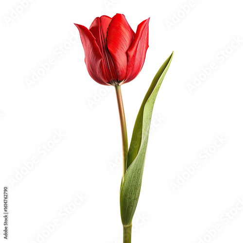 tulip, red, flower, bloom, blossom, spring, nature, botany, garden, vibrant, colours, stem, leaf, green, isolated, macro, close, detail, single, plant, flora, beauty, organic, high-coloured, intense, blood-red, dark, dark red, elegant, springtime, floral, decorative, still life, picture, image, photo, foliage, botanical, blooming, fresh, bright