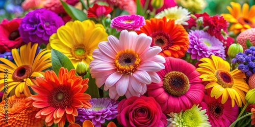 Close-up of a vibrant variety of mixed flowers, floral, garden, blooming, colorful, petals, nature, bouquet, vibrant, close-up