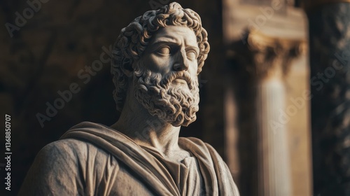 sculpture, statue, marble, man, beard, face, eye, closed, ancient, roman, greek, art, history, head, bust, detail, stone, weathered, texture, background, architecture, column, building, old, classic, vintage, culture, heritage, bequest, power, wisdom, cognition, strength, serenity, peace, calm, expression, emotion, thoughtful, contemplative, solemn, majestic, monumental, elegance, beauty, light, shadow, contrast