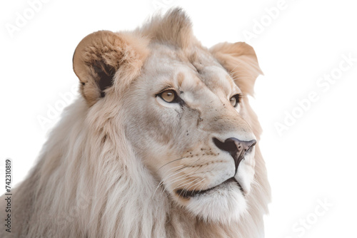 Close-up of a white lion, side view, isolated on transparent background
