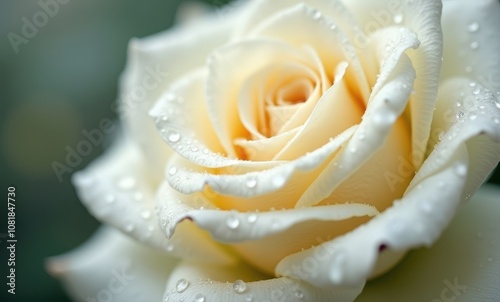 rose, white rose, dew drops, flower, nature, botanical, flower petals, flora, garden, elegant, beauty, freshness, natural light, closeup, peony, spring, floral, green background, serenity, delicate, romance, blossom, charming, texture, soft focus, luxurious, calmness, harmony, vibrant, white petals, garden flower, moisture