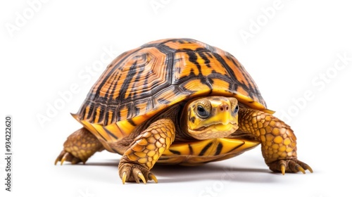turtle, box, yellow, bellied, shell, black, marking, walking, white, background, reptile, pet, wildlife, nature, closeup, animal, carapace, head, eye, nose, leg, claw, foot, scale, pattern, texture, isolated, photo, wild, cute, adorable, terrestrial, amphibian, slow, steady