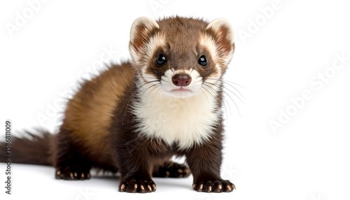 ferret, young, animal, mammal, wildlife, portrait, closeup, cute, small, brown, white, fur, face, eye, nose, paw, standing, front view, isolated, studio, photo, vertebrate, nature, pet, domestic, adorable, image, closeup, detail, furry, sitting, front, profile, alert, sharpened, sharp, photo, background, contrast, texture