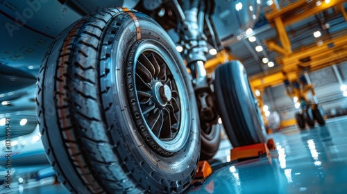 close, aeroplane, wheel, showcase, intricate, detail, land, gear, hydraulic, system, tread, pattern, tire, aircraft, component, aviation, design, part, maintenance, technology, structure, engineering, mechanism, wing, tech, innovation, flight, runway, wireless, control, inspection, construction