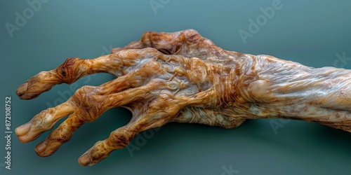 hand, aged, elderly, skin, vein, wrinkle, human, closeup, macro, anatomy, biology, ageing, time, life, texture, detail, brown, white, yellow, pale, fleshy, finger, nail, knuckle, joint, wrist, forearm, photo, studio, medicals, science, research, art, abstract, surreal, creepy, eerie, dark, melancholy, death, decay, fragile, vulnerable
