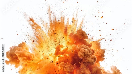 Close-up of an explosion with intense fire and smoke on a white background --ar 16:9 Job ID: 1fb02b8c-547b-4c86-8cac-a33b9054c87d