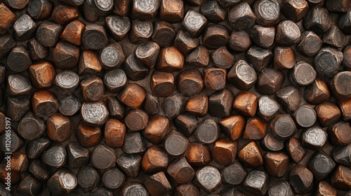 Close-up of assorted metal nuts arranged in a textured background showcasing industrial hardware details and craftsmanship
