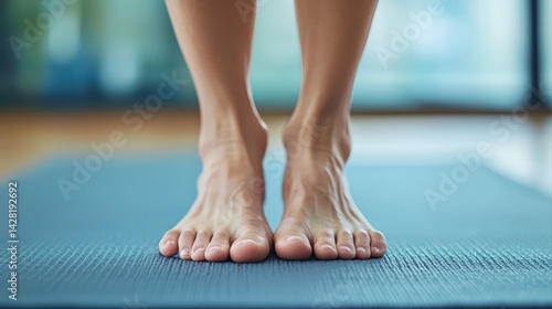 Close-Up of Bare Feet on Yoga Mat for Relaxation and Meditation