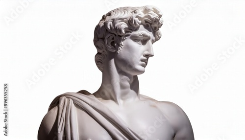 classical, marble, sculpture, male, figure, curled, hair, side, profile, intense, closeup, intricate, detail, carving, minimalist, white, background, statue, art, ancient, renaissance, detailed, texture, chiseled, stone, face, expression, craftsmanship, aesthetic, greek, roman, mythology, beauty, antique, smooth, fine, portrait, artistic, iconic, human, form, elegance, timeless, masterpiece, culture, heritage, realism, museum