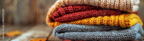 Close-up of colorful knitted fabric stacked neatly.