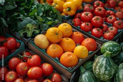 freshness, detail, healthy eating, sunlit, natural, high-coloured, contemporary, closeup, vegetable, fruit, market, greener, orange, tomatoes, bell pepper, squash, broccoli, farmers market, organic, ripe, juicy, cookery, agriculture, harvest, vegetarian, diet, nourishment, seasonal, marketplace, retail, food photography, display, cultivation, sustainability