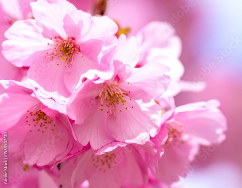 Close-up of delicate pink cherry blossoms in full bloom. Perfect for spring themes, nature, and floral designs.