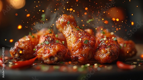 fried, chicken, wing, close, up, food, meal, snack, cookery, culinary, crispy, spicey, pepper, seasoning, herb, grill, party, celebration, banquet, smoke, favor, epicure, eat, tasty, savoury, dish, eatery, chef, bowl, plate, cooking, indulgent, juicy, hot, fresh, comfort, delicious, garnish, wooden, background, festive, bite, serving, enjoyment