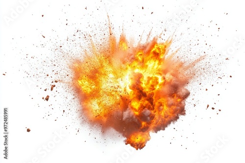 Close-up of Fire Explosion Against White Background, Action Concept Generative AI