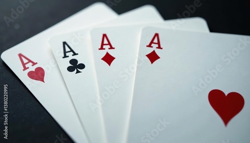 Close-up of four aces, each showing a different suit, forming a square , texture, pattern