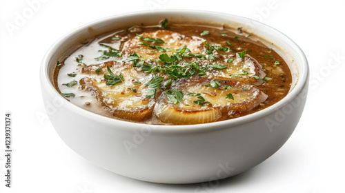 french, onion, soup, garnish, bowl, closeup, culinary, cookery, savoury, traditional, cheese, herb, broth, delicious, appetising, hearty, meal, cooking, flavorful, comfort, homemade, classic, rustic, dining, kitchen, parsley, receipe, epicure, ingredient, food, dish, white, chopped, aromatic, fresh, warm, tasty, serving, texture, bistro, melted, slice, lunch, dinner, chives