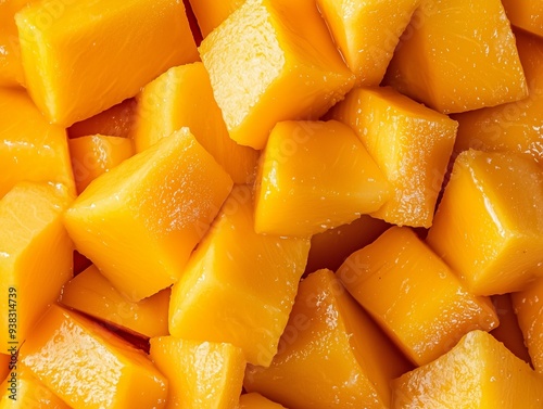 Close-Up of Fresh Diced Mango, Juicy and Sweet Tropical Fruit for Salads, Snacks, and Healthy Vegan Cuisine