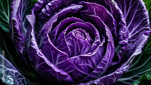 Close-Up of Fresh Purple Cabbage with Water Droplets