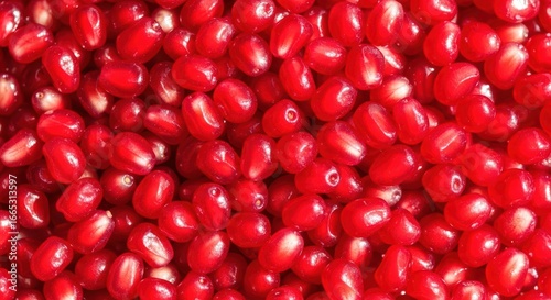 Close-up of fresh red pomegranate seeds with vibrant color and texture