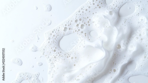 Close-up of frothy white milk texture with bubbles, creating a soft and creamy appearance, perfect for dairy-related concepts.