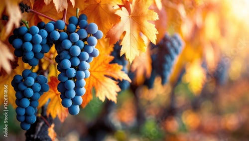 Close-up of grape bunch in vineyard during autumn in Mendoza, Argentina