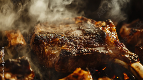 Close-up of grilled bone-in meat with a rich smoky flavor