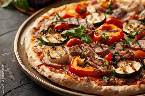 pizza, grilled, steak, vegetarian, closeup, food, italian, cookery, cheese, tomatoes, bell pepper, courgette, egg, basil, epicure, delicious, meal, dinner, lunch, eatery, crust, topping, savoury, slice, dining, fresh, baked, herb, culinary, crusty, pepper, mushroom, eatery, mediterranean, cooking, indulgence, favor, eating, nourishment, appetence, copy space, vegetable, table