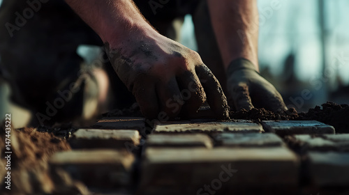 hand, brick, construction, site, work, labor, mud, dirt, building, laying, men at work, industrial, tool, material