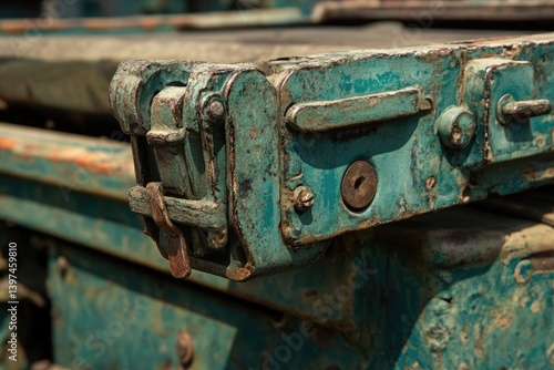 machinery, metal, green, weathered, rusted, closeup, detail, latch, mechanism, industrial, equipment, engineering, aged, vintage, antique, texture, surface, pattern, rough, grunge, rust-eaten, oxidation, corrosion, paint, peeling paint, decay, abandoned, forgotten, neglected, obsolete, technology, connection, bolt, fastener, joint, link, lever, handle, hinge, structure, design, construction, industrial design, patina, mechanical, close