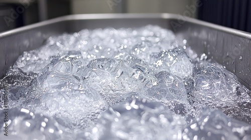 ice, water, bathe, cold, immersion, therapy, treatment, cube, glacé, refreshing, chilling, bubble, container, metal, texture, liquid, clear, transparent, cool, frigid, icy, winter, frost, glacial, shivering, brine, freezing, crisp, sparkling, white, grey, steel, closeup, macro, photo, still, surface, detail