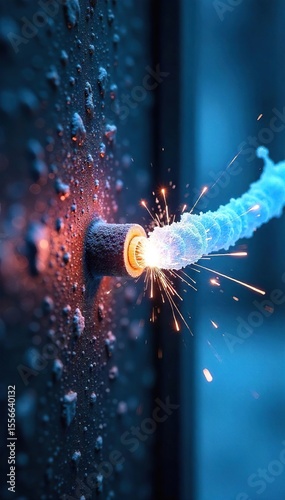 Close-up of icy blue electrical wires sparking against a frozen metal surface, radiating cold energy Perfect for technology, winter, or science fiction themes , cold energy, background