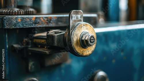 Close-Up of Industrial Machine Component with Metal and Rust Details