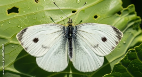 butterfly, white, cabbage, green, leaf, insect, nature, wing, dew-drop, closeup, macro, small, antennae, spot, veined, delicate, garden, plant, beautiful, sunlight, fresh, texture, pattern, natural, environment, wildlife, resting, peaceful, serene, biology, symmetry, flight, pollinator, ecology, photo, summer, life, elegant, fragile, detailed, organic, habitat, flora, fauna, scene