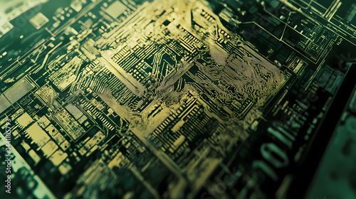 Closeup of laser lithograph on circuit board in a high-tech facility. Memory Foundry. Illustration