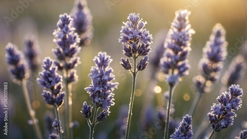 Close-up of lavender flowers in soft sunlight, showcasing their beauty and tranquility.